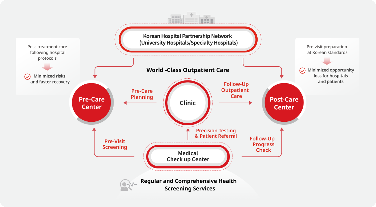 From pre-treatment preparation before patients receive care at Korean medical institutions to post-treatment recovery and follow-up, we help enhance treatment outcomes and patient satisfaction through tailored medical support and coordinated services.