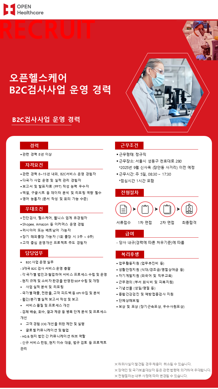 [마감] B2C검사사업 운영 담당